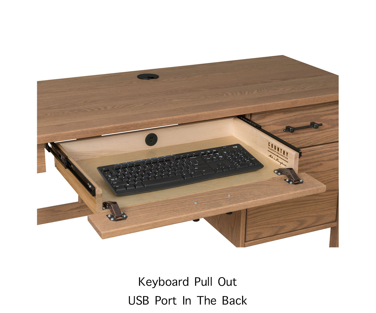 • Keyboard pullout with dual USB charging port